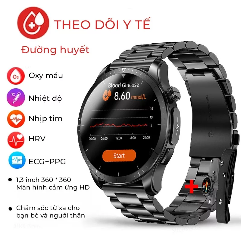 Đồng hồ thông minh đo đường huyết không xâm lấn Nam nữ Nhiệt kế đo huyết áp Đồng hồ sức khỏe ECG + PPG Đồng hồ thông minh nữ Smartwatch