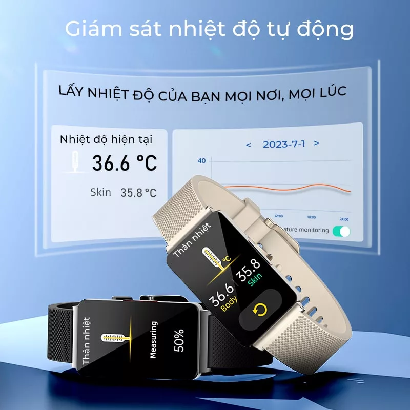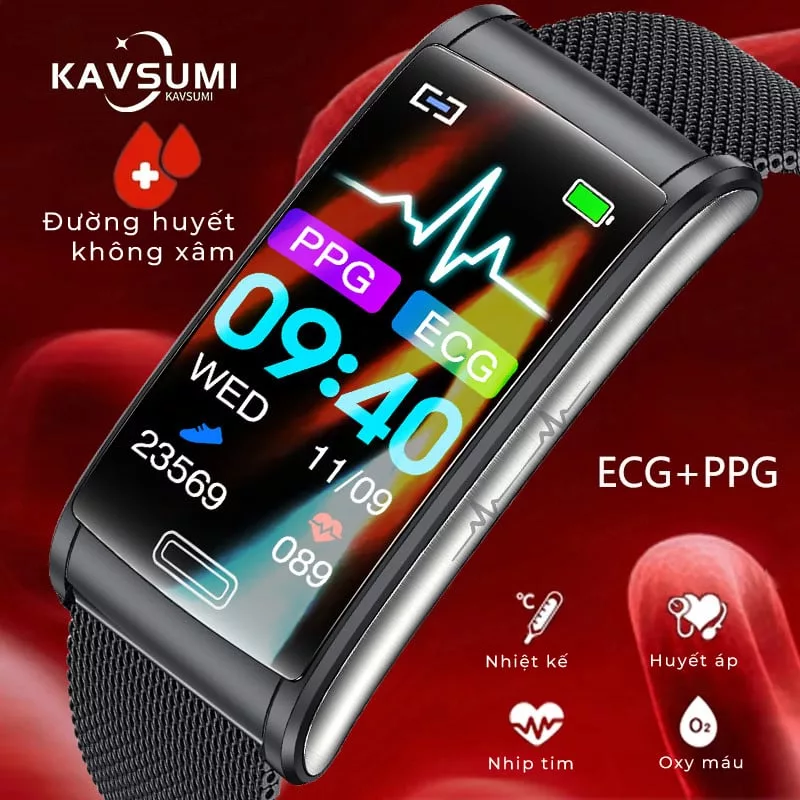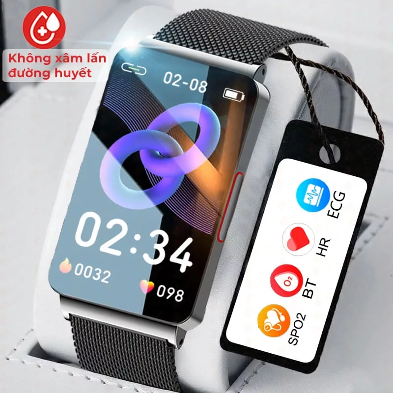 - Theo dõi huyết áp, đo lượng đường trong máu, đo nhiệt độ, đo ECG, thông báo tin nhắn thời tiết, đồng hồ báo thức,