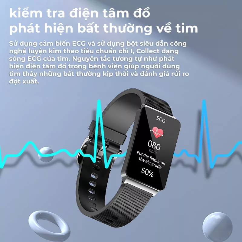 - Điện tâm đồ + chip chăm sóc, đo huyết áp, oxy máu, nhịp tim, nhiệt độ cơ thể