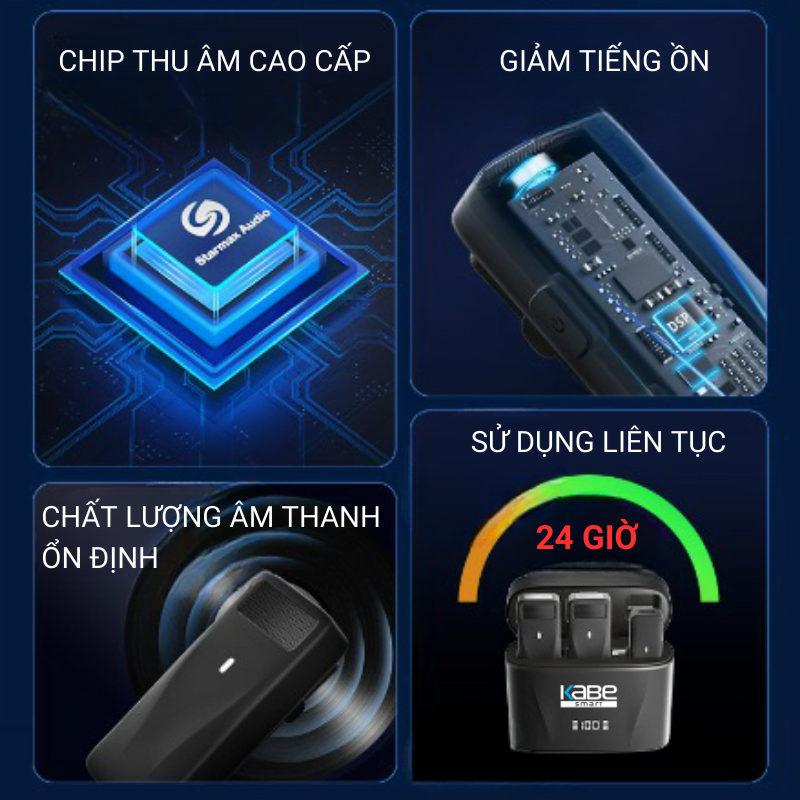 - Công nghệ đen không dây mới 2.4G: giao thức truyền dẫn riêng, thuật toán nén âm thanh.